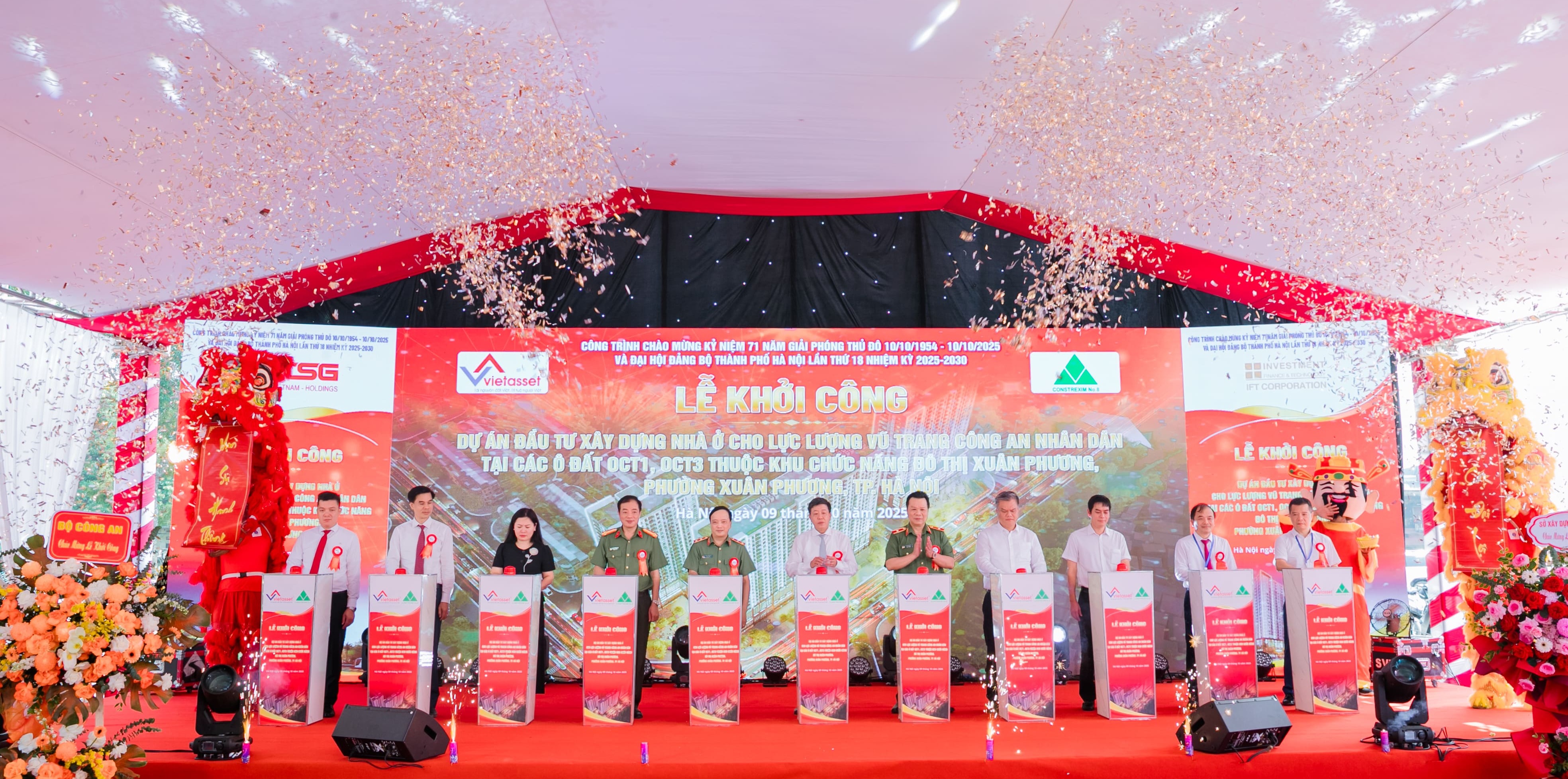 Ngày 9/10/2025, CÔNG TY CỔ PHẦN ĐẦU TƯ VIETASSET (ĐẠI DIỆN NHÀ ĐẦU TƯ LIÊN DANH CÔNG TY CỔ PHẦN VIETASSET VÀ CÔNG TY CỔ PHẦN ĐẦU TƯ VÀ XÂY LẮP CONSTREXIM SỐ 8) long trọng tổ chức Lễ khởi công Dự án đầu tư xây dựng nhà ở cho lực lượng vũ trang công an nhân dân tại các ô đất OCT1, OCT3 thuộc khu chức năng đô thị Xuân Phương , phường Xuân Phương, Tp.Hà Nội