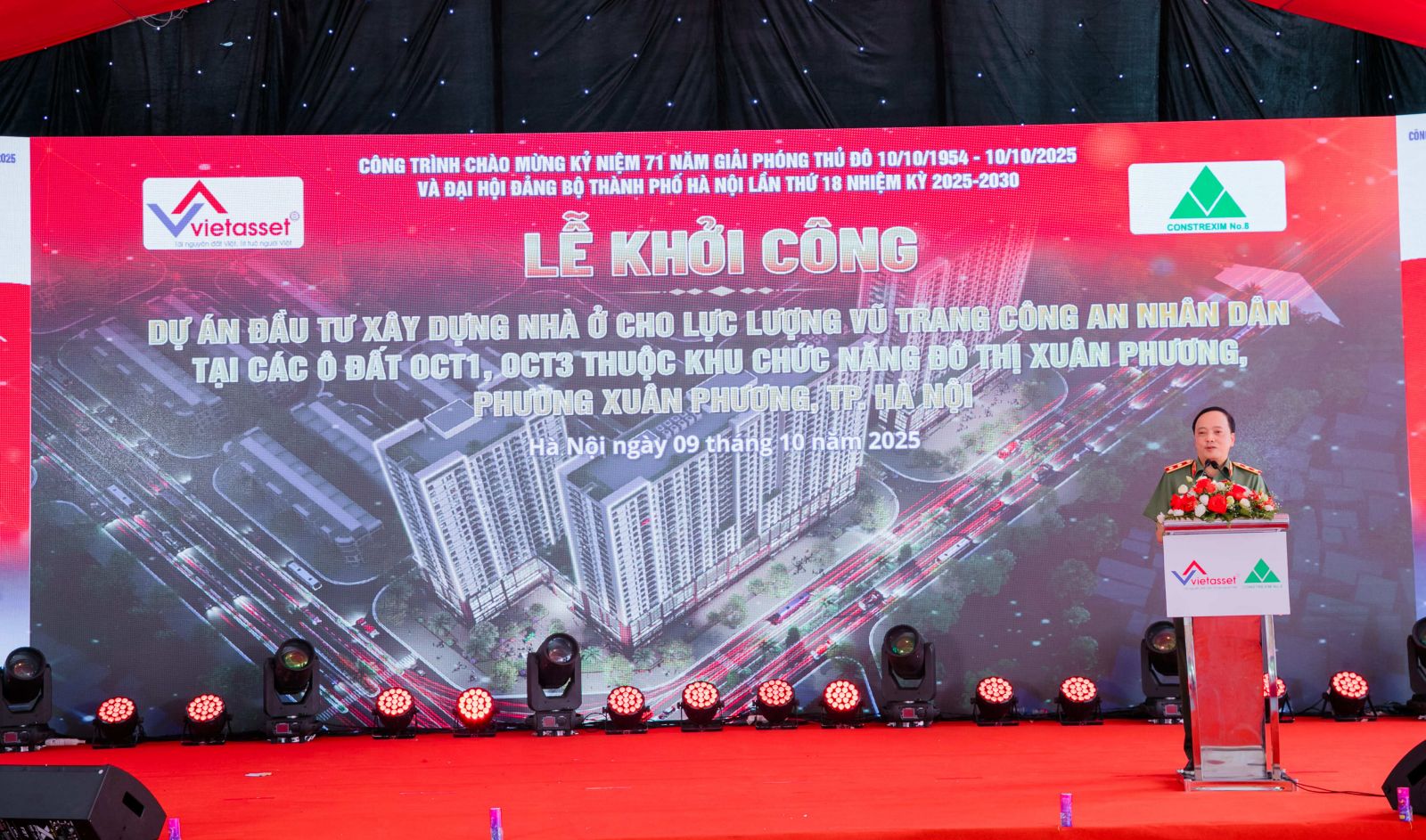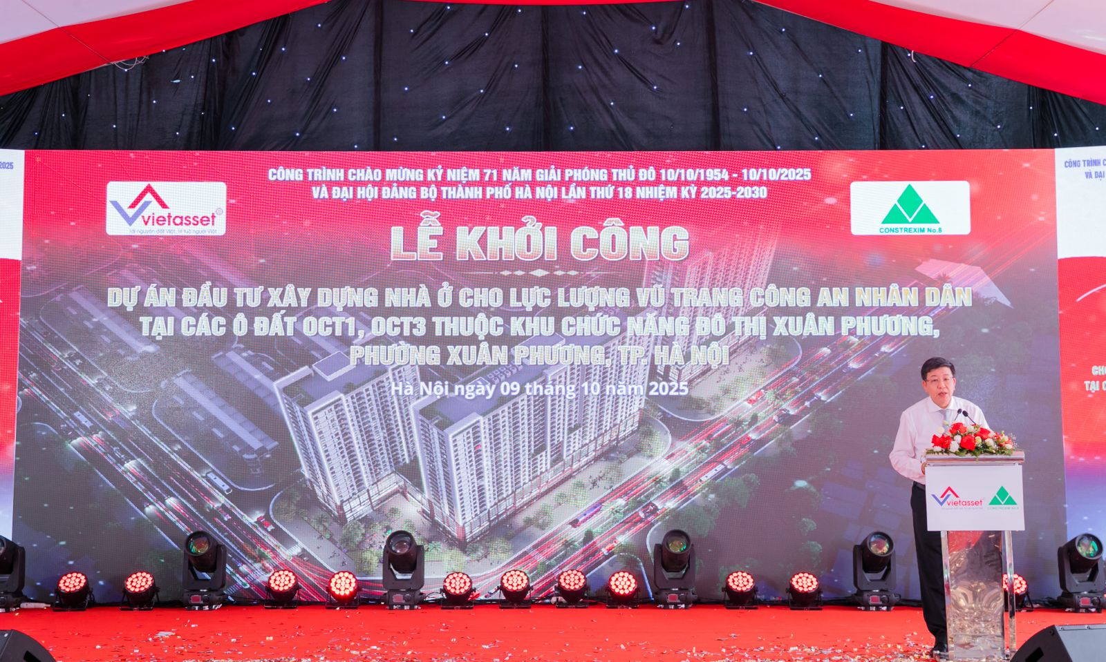 Ngày 9/10/2025, CÔNG TY CỔ PHẦN ĐẦU TƯ VIETASSET (ĐẠI DIỆN NHÀ ĐẦU TƯ LIÊN DANH CÔNG TY CỔ PHẦN VIETASSET VÀ CÔNG TY CỔ PHẦN ĐẦU TƯ VÀ XÂY LẮP CONSTREXIM SỐ 8) long trọng tổ chức Lễ khởi công Dự án đầu tư xây dựng nhà ở cho lực lượng vũ trang công an nhân dân tại các ô đất OCT1, OCT3 thuộc khu chức năng đô thị Xuân Phương , phường Xuân Phương, Tp.Hà Nội. Dự án hoàn thành sẽ cung cấp 818 căn hộ, góp phần cải thiện nhà ở cho CBCS trong lực lượng CAND