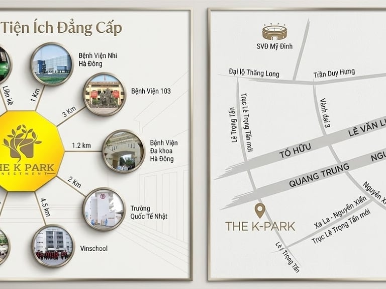 Với vị trí trên trục Lê Trọng Tấn – Quang Trung, The K Park thừa hưởng hạ tầng phát triển mạnh của khu vực phía Tây Hà Nội, gần các tuyến giao thông trọng điểm như đường sắt trên cao Cát Linh – Hà Đông, tuyến BRT và các trục đường lớn.